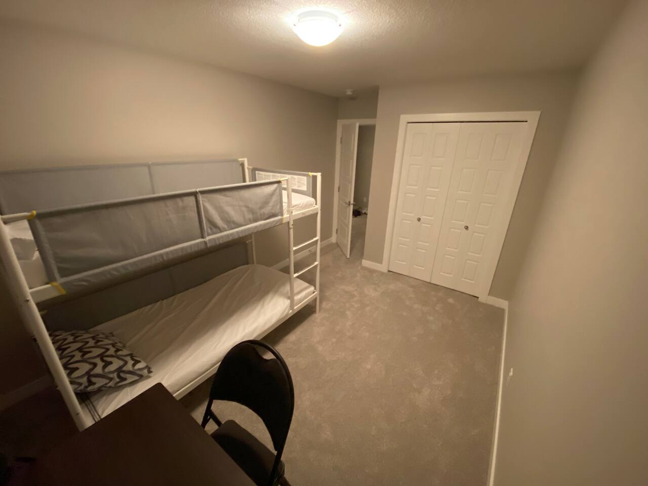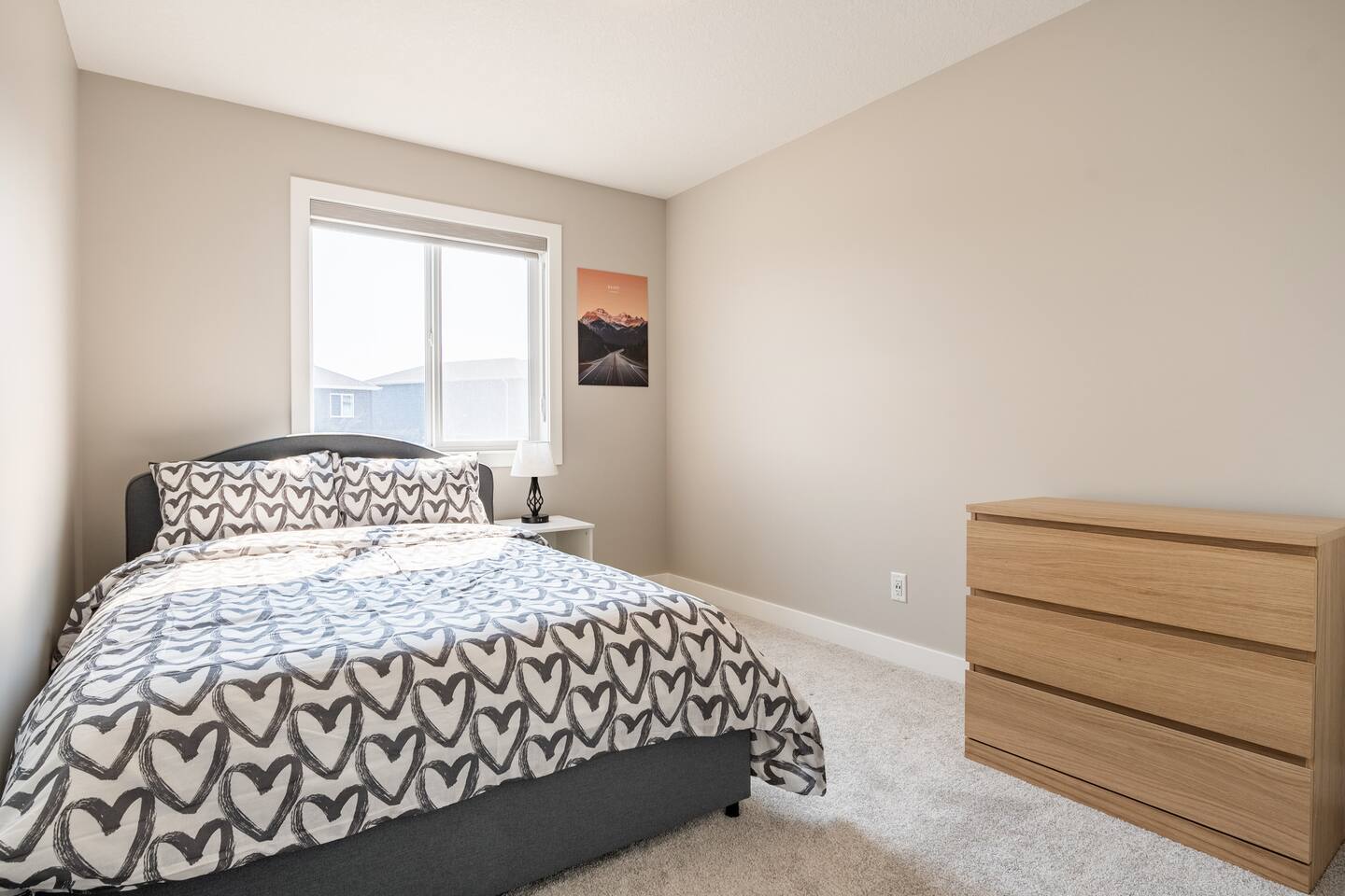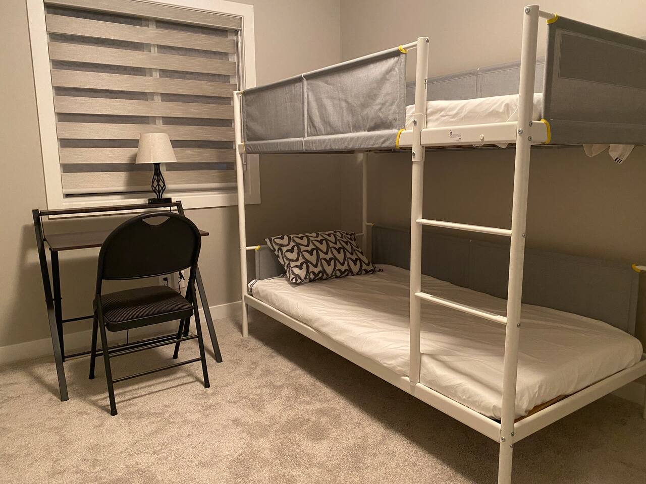 Welcome to your cozy home away from home! This two-story home offers comfort, space, and all the essentials for a relaxing stay. Upstairs: Spacious master bedroom with a luxurious King bed, walk-in closet, and Jack & Jill bathroom Second bedroom with a comfy Queen bed and floor mirror Fun third bedroom with a bunk bed and a work desk – great for kids or remote work Convenient in-unit LG washer & dryer Coming Soon (June 2025): Baby Crib Main Floor: Fully equipped kitchen with granite countertops and a large fridge 58" Smart TV with cable – perfect for movie nights Dining table for 4 + 3 bar stools at the kitchen island Standing desk for those who work on the go Location: Nestled in a friendly neighborhood in Northwest Calgary – close to shops, restaurants, and attractions. Please note: This rental includes the main and upper floors. The basement is not part of the rental. What guests say: ⭐ "Felt like home! Brand new and fully stocked." – Mohamed ⭐ "Clean, comfortable, and perfect for families." – Sarah ⭐ "Friendly host and great location!" – Hammad We follow strict cleaning protocols to ensure a sanitized and safe space for every guest.
